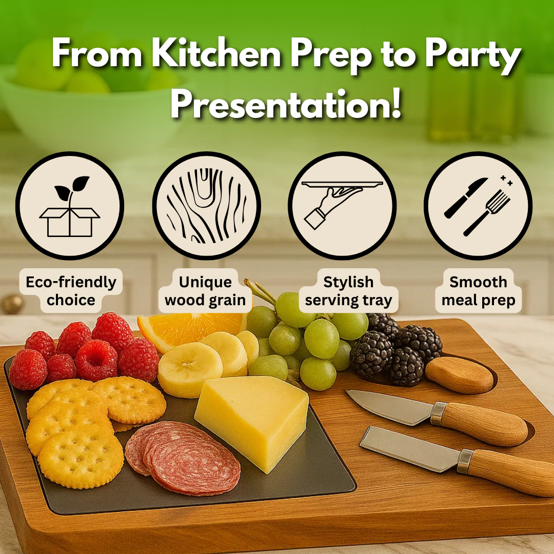 Crafted with premium acacia wood and a removable slate insert, it resists odors, fading, and wear. Unlike cheap boards that break, this one stays durable, stylish, and ready for every gathering.